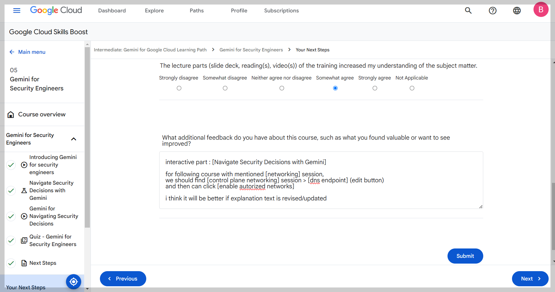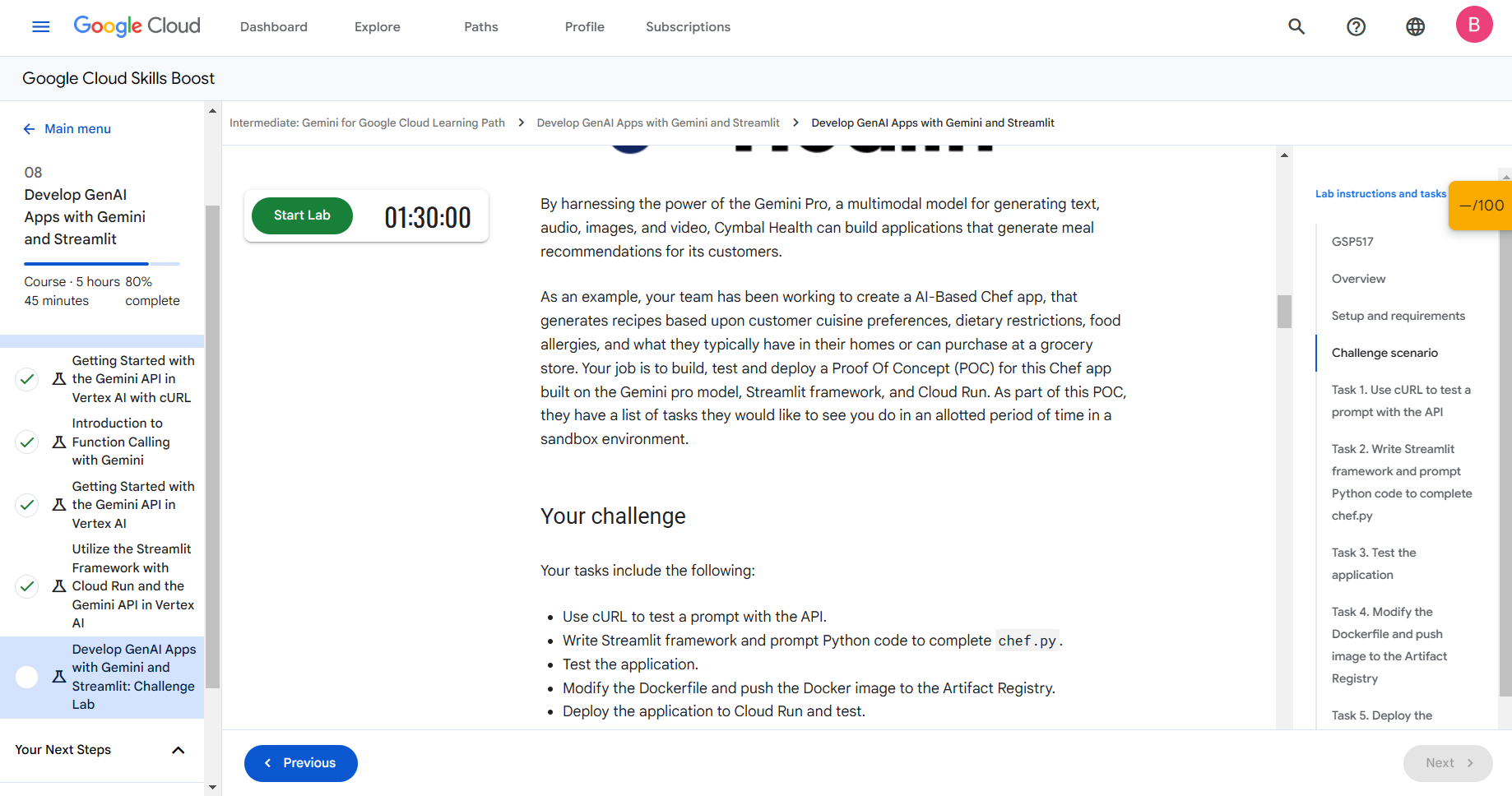 수료후기 GenAI 관련 스터디잼을 완주했습니다. 여태까지 진행했던 다른 스터디잼에 비해서, 분량이 생각보다 적었던것 같습니다. 정확히 따지자면, ‘스터디잼 수료’ 를 위해서 진행하는 내용