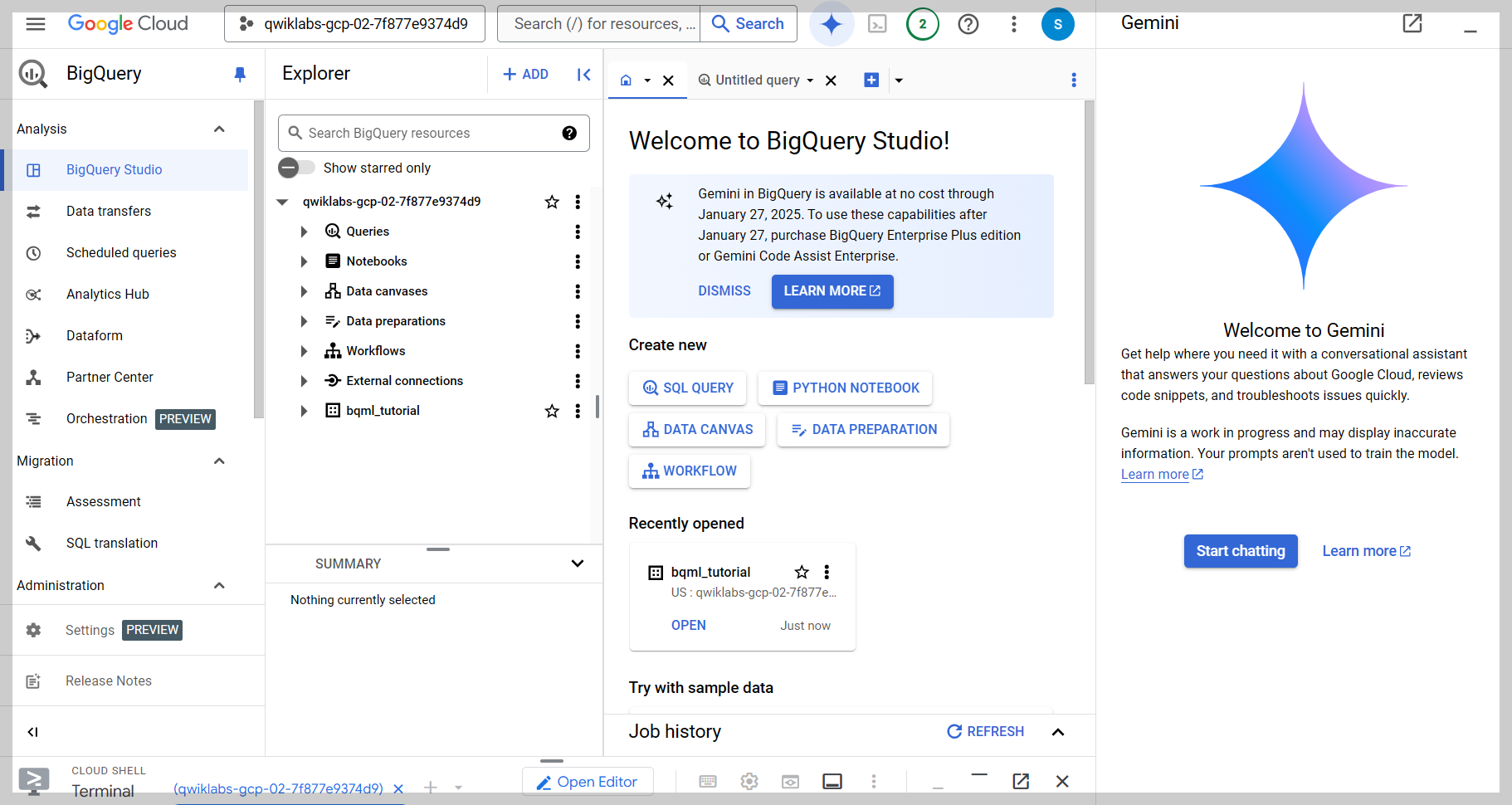 - Qwiklabs 클라우드 환경 기반으로 Terminal과 JupyterNotebook을 활용해서 주어진 상황에 대한 문제 해결