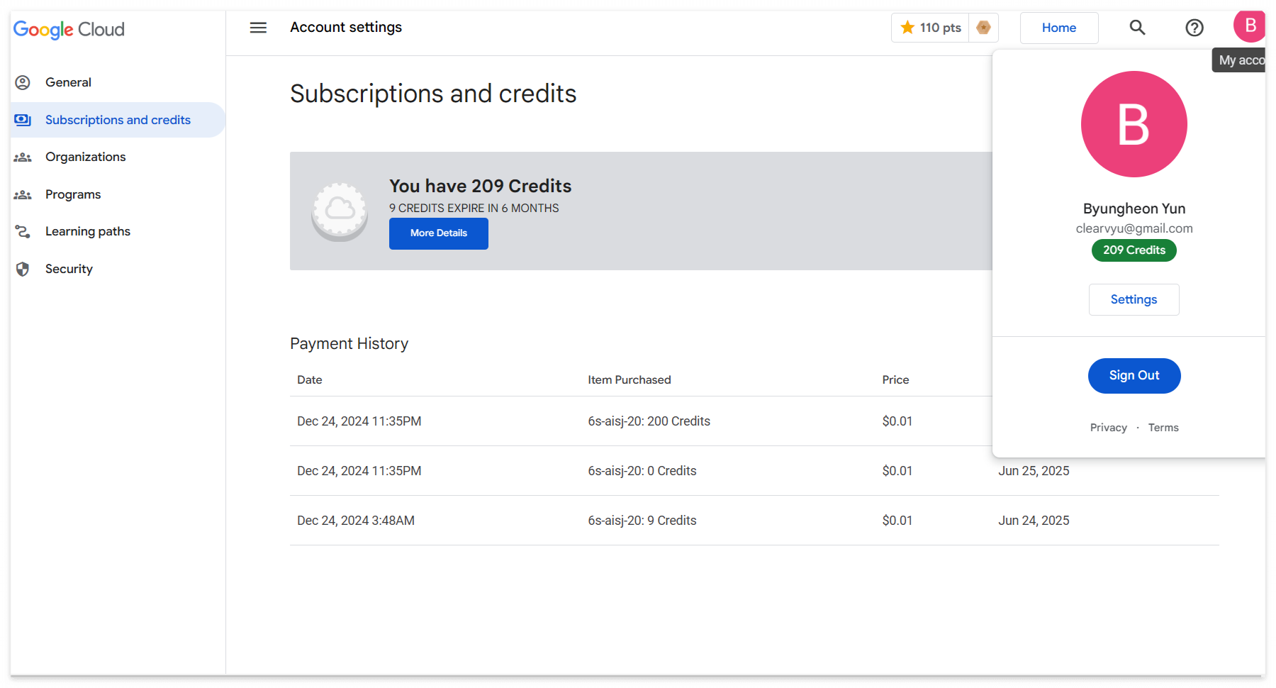 소요 시간 : 약 12일, 실질적으로 7일 | 2024/12/24 03:45 ~ 2025/01/05 00:45 (최종 잔여 크레딧 115 Credits)